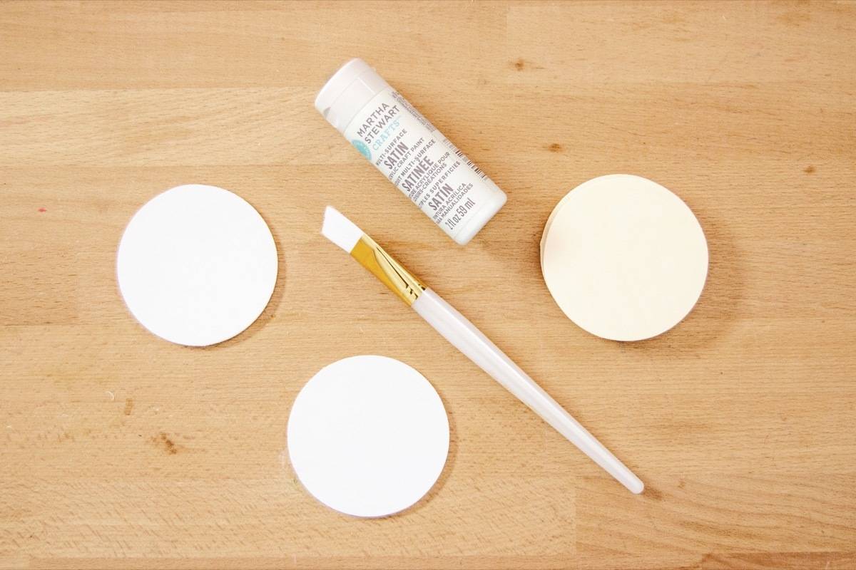 Paint the wood rounds with white acrylic paint, and set aside to dry.