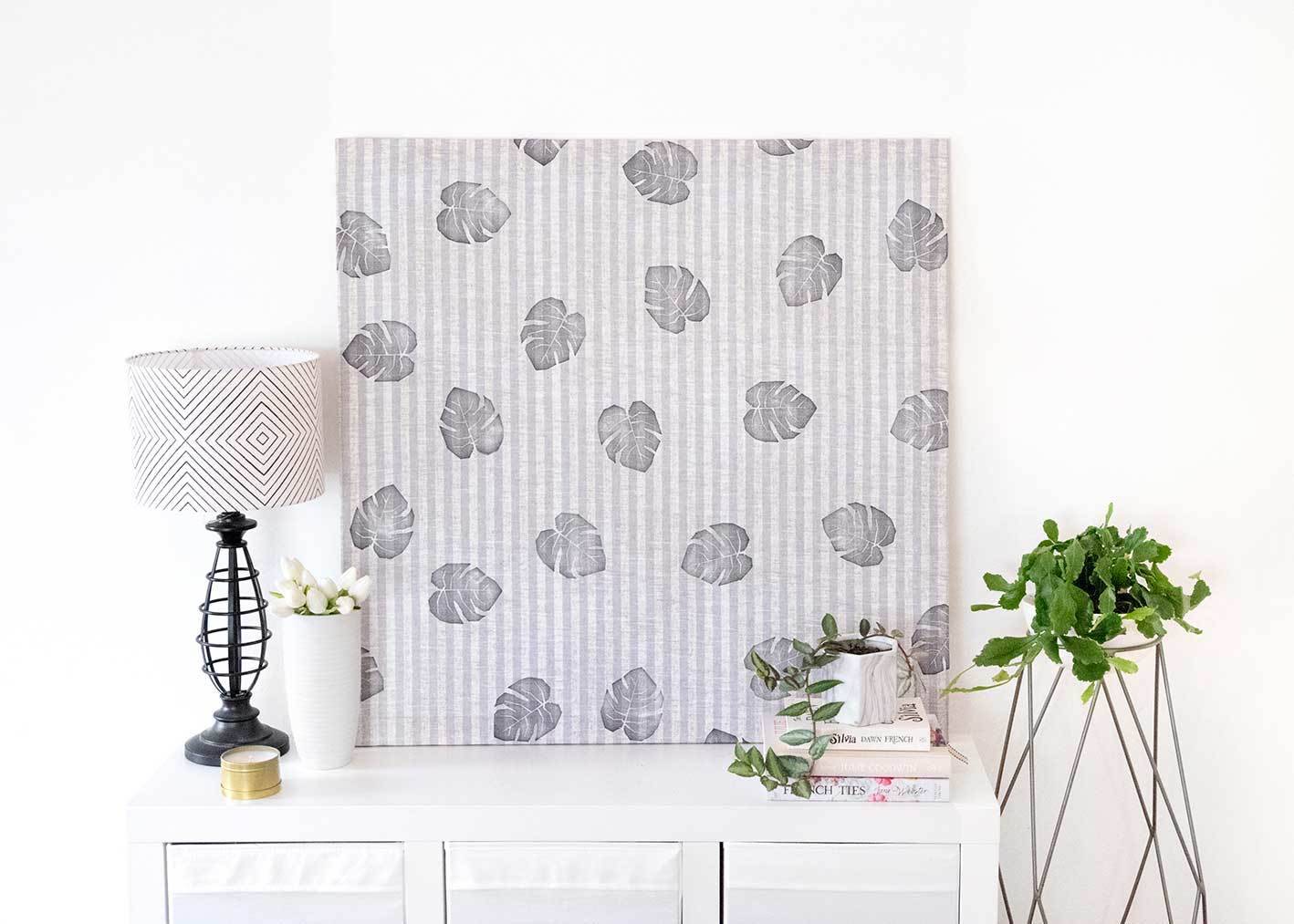If you’re short on time, don’t forget that you could just as easily skip steps 2 to 6 and use a store-bought patterned fabric instead. It’ll cut your project time in half and you’ll still have a beautiful piece of fabric wall art to hang!