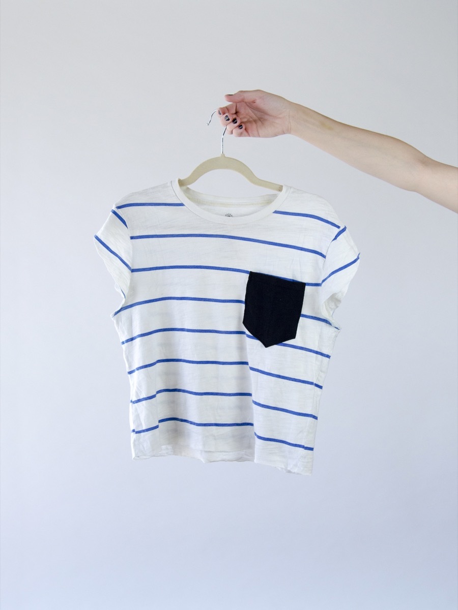 After you’ve sewn up the sides, put the shirt back on to ensure the alterations are correct. If so, cut off the excess fabric along the new side seams, and you’re done!