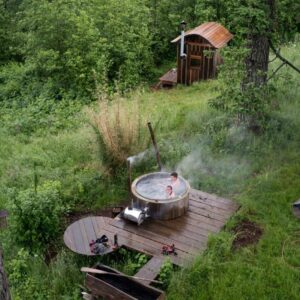 Whether placed in a lush garden or nestled in a scenic wilderness, a wood-fired hot tub enhances the visual appeal of your outdoor space, creating a tranquil oasis for relaxation.
